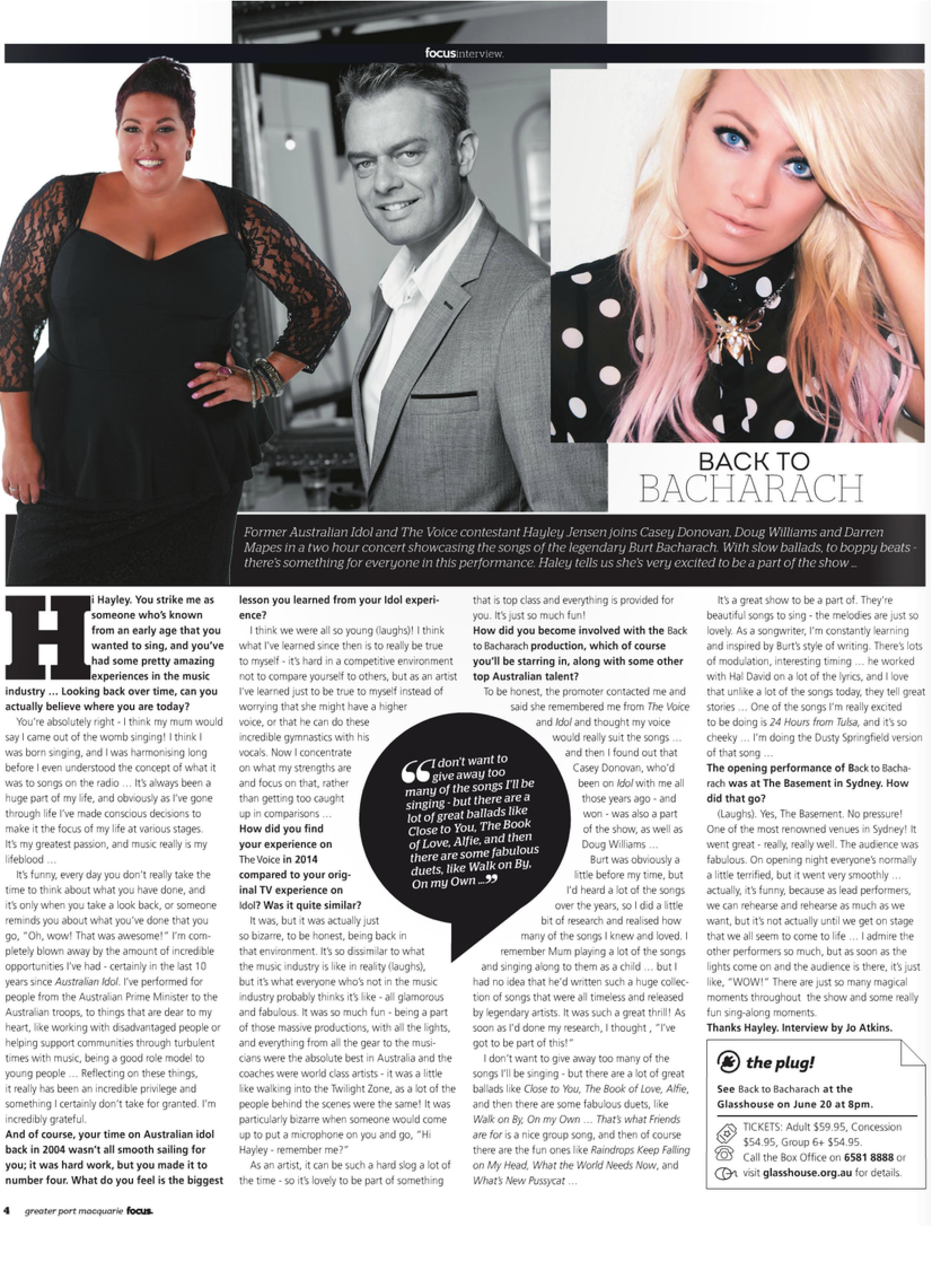 Article in the Greater Port Macquarie Focus in the lead up to the Bach to Bacharach show in the Glasshouse on the 20th June