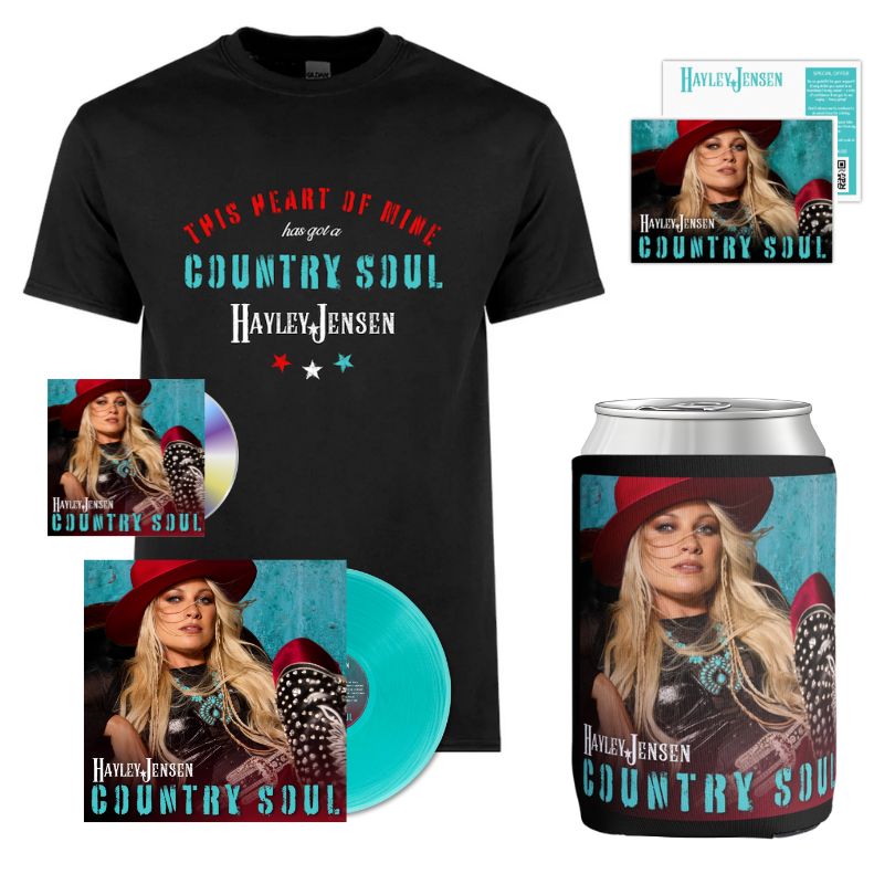Ultimate Unisex Bundle ‘Country Soul’ Women’s Tee, Stubby Holder, CD & Aqua Vinyl